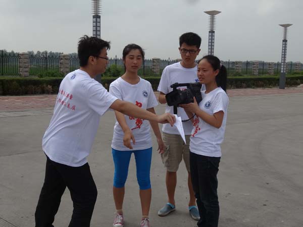 “好学力行梦之队”暑期社会实践团队的队员们早早起床,趁着朝阳,在亳州煤业有限公司门口开始进行第一天的微电影拍摄工作,并邀请到亳州煤业有限公司的团委副书记对拍摄进行指导与建议。