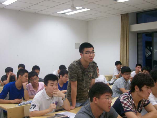 晚19点,活动正式开始。在郭德做以简单开场白后,闫安同学首先发言。闫安就自身及宿舍情况做以简要介绍,并简单的分析一下就业形势。在热依拉自我介绍后,活动进行到疑问解答环节。在疑问解答环节,同学们踊跃发言,提出多种就业问题及就业疑惑。活动现场气氛活跃,同时,闫安及热依拉也综合自身就业经验进行一一解答。在闫安的陈述中,我们了解到本专业的多种就业去向,以及将来就业趋势,他说到,在企业竞争中应该有活到老学到老的学习精神。热依拉主要针对煤矿方面就业进行解答。在她的陈述中,我们了解到煤矿方面就业方向,就业范围,以及少数大型煤矿企业招收人才种类。同时也在面试中提出四个必要因素。最后,为消除与同学们的距离感,闫安与热依拉走下讲座,与同学们面对面交流。晚21点许,会议结束。