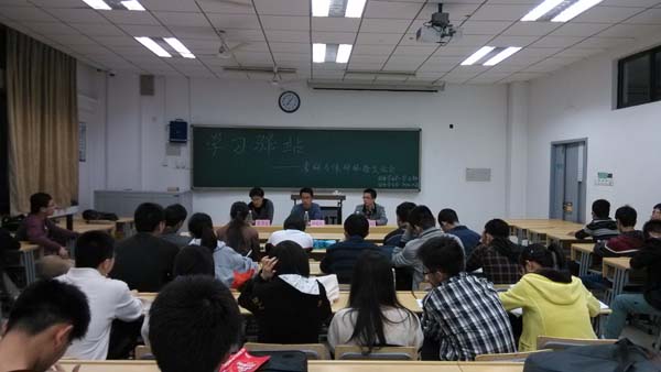 晚上7点左右,交流会准时开始。首先,主持人做了简要的开场白并介绍了到场的嘉宾以及讲座的流程。紧接着进行的是,嘉宾们的精彩的演讲。已保研的学长徐超航、张笑征、王可分别从自身角度指出有保研的注意事项,包括保研的准备,怎样与导师联系,有关选择专业方向和复试等方面的一些心得等问题。同时考研的学长们也介绍他们难忘的考研经历,并从考研的心里调节,考研的目的,考研的复习等方面来分享考研的经验。接下来是自由交流环节。在这个环节中,同学们怀着自己对考保研的问题向积极向学长们提问,在他们耐心详细的解答下,同学们获益匪浅,本次交流会取得非常好的效果。