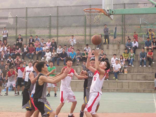 下午4时10分,比赛正式开始。比赛在观众的欢呼声中拉开序幕,两队实力均很雄厚,均在之前的比赛中取得了优异的成绩。但由于比赛时间较紧,大家刚下课便匆忙赶去,加之天气炎热,更增加了对身体的考验。双方球员气势都有些低落。比赛前3分钟,双方各一个罚球得分。相比之下,矿业学院的球员似乎进入状态更快,矿业学院的11号队员为本队赢得一球,紧接着15号队员一鼓作气一个漂亮的2+1将比分拉开。包子漫画