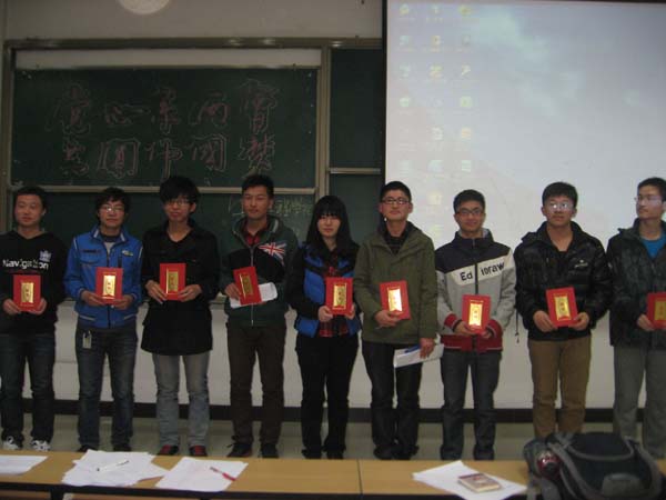 晚19时许,工作人员及参赛人员早早来到现场,观赛人员也热情洋溢,期待本次比赛正式开始。本次活动先从两个场地进行初赛,分别筛选出前三甲,再由这六支队伍展开冠季亚军的争夺赛。初赛分为“选择题”和“限时题”两个环节进行,分别是关于两会的相关问题。在比赛中,每个小组将会有一次求助机会,被求助的观赛人员回答正确将会获得精美小礼品一份,赛场气氛十分活跃,观赛人员经常抢答求助问题,使比赛很具可观性。比赛进行到决赛中,六支队伍齐聚第一赛场。中场休息后,比赛继续激烈进行。决赛分为三个环节,分别是“猜红歌”、“论述题”及“识图题”。比赛激烈紧张,场下掌声雷动。在论述题中,每组要求认真观看媒体播放的没一字一句,不允许放过每一个数字,要求较高。比赛进行到最后,场下热情不减,答案呈现的前每一秒钟,都扣人心弦。经过残酷的决赛后,曹蒙钰一组后来居上,获得冠军,黄倚义组、李小强组获得季军,李佳芮组、苏庆乐组、扈紫豪组获得季军。九点许,比赛结束。