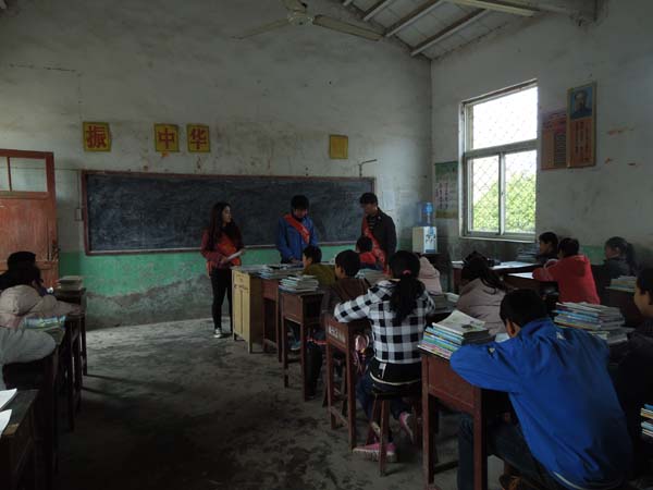 本次防震演练共分为两个环节。首先,青协人员分成三批分别对桥上中学的三个班级讲解应急避震的主要方法以及紧急疏散后的集中地点和疏散路线。紧接着,进行的是地震模拟演练。在拉响第一次响铃的时候,首先进行的是地震时在室内正确保护自己的演练。过程中,同学们立即就近躲避,采用卧倒或蹲下的方式,躲到桌角或在墙角。约两分钟后,随着第二遍铃声的响起,开始进行的是逃生演练。老师们在一旁维护秩序,同学们依次有序地跑出教室。在空旷地带清点完人数后,青协成员们将同学们带回教室并对同学们逃生演练中出现的问题进行针对性的点评。