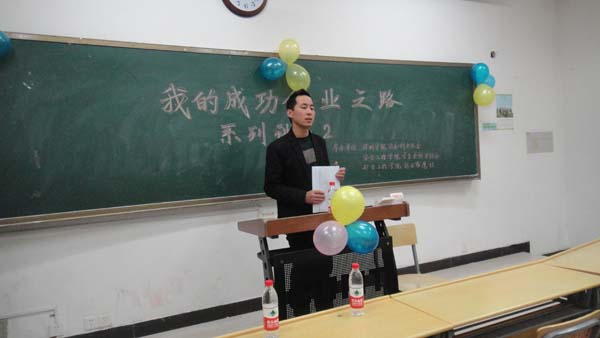 创业协会、矿业学院创业雄鹰社联合承办的“我的创业之路”系列讲座二在教四B102成功举办。本次讲座由环测创业协会主席曾鸣主持。徐州红点信息科技有限公司创办者兼美味佳品和美包佳品的总经理――梁万成作为演讲嘉宾出席了本次活动。