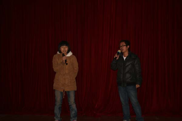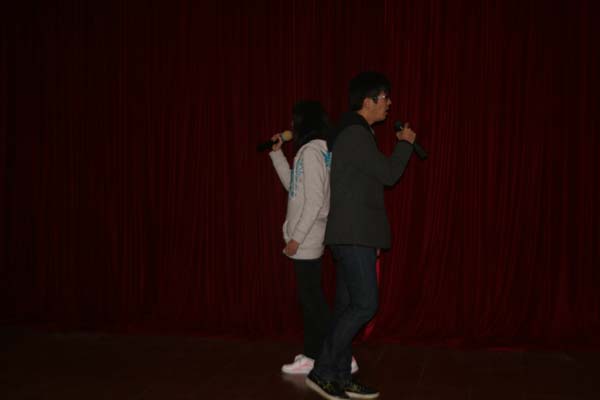 的刘小燕和黄伟的组合以及马梦洋和牛壮的组合分别演唱了《你那么爱她》和《滚滚红尘》。而来自安全11-3班的袁娜和薛海波则以一首《诺》将比赛推至高潮,赢得台下阵阵欢呼。两个小时的比赛在歌声中很快就过去了。最后,由主持人宣布了各参赛选手的得分,这一场初赛也由此精彩落幕。