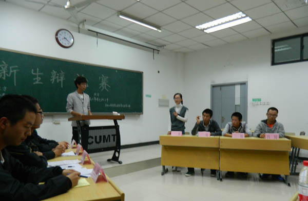 2012级新生辩论赛半决赛在教一C107拉开帷幕,校级优秀辩手王蒙、院级优秀辩手何选择、李翰林、赵旭以及李元元等被邀请作为此次辩论赛的评委。