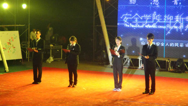 学子多才多艺的特点。再次看完一段精彩的视频,晚会迎来了又一高潮,由安全11、12级新生表演的《雷人舞》使得场内爆笑不断、掌声如雷。随后,安全2011级3班张捷勇同学带来的歌曲《Opera2》一出场便惊艳全场。紧随而至的搞笑辩论赛《学妹?学姐?》也让会场的气氛不断升温,刘辉、贾鸿岩等表演者通过各种犀利的说辞和精湛的演技使得整个辩论赛精彩激烈、妙趣横生。晚会中还有一个精心安排的互动环节,由主持人任意抽取梦想墙中的便笺,并对被抽中的新生进行采访,这个环节收到了广大新生的欢迎,被抽中的新生也踊跃发言,将自己的梦想宣读出来。之后,由包子漫画