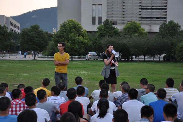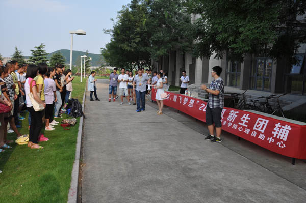 心理自助中心的组织下,学院团委学生会成员在教五草坪对14级新生进行团体辅导。14级辅导员孙婷、郑文奇老师,倪炎老师出席了此次团辅活动。