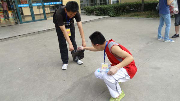 党员工作站负责的区域是二食堂广场至杏苑宿舍之间的道路以及两旁的灌木丛。虽然六月的徐州已经是烈日当头,但是学院党员们参加活动的热情却仍然十分高涨。垃圾箱旁、灌木丛中、墙角下,都是同学们不会放过的垃圾死角,同学们带着一次性的手套,一次次的弯腰,构成了校园里的一道独特的风景线。蔡维维老师在整个活动的过程中,一直与同学们在一起,不怕脏、不怕累,充分展现了其作为一名党员教师的优良品质。下午四点钟,经过一个多小时的清理,学院党员工作站圆满完成了此次活动的任务。
