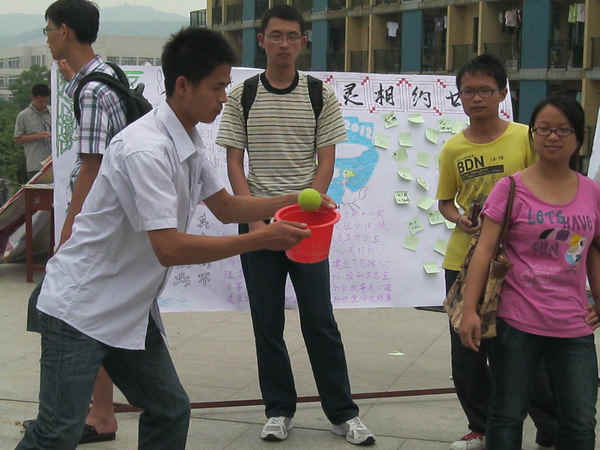 心理自助中心积极参与到此次以“关爱自己,关爱他人”为主题的活动中。中心不仅准备了精美的展板,向过往同学宣传心理健康调节的有关知识。也通过“大声喊出你的心声”,“合作投球”等活动,现场向同学们展示情绪调节以及改善人际关系的技巧。活动期间,同学们积极参与、热情高涨,充满了欢声笑语。