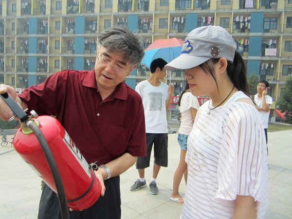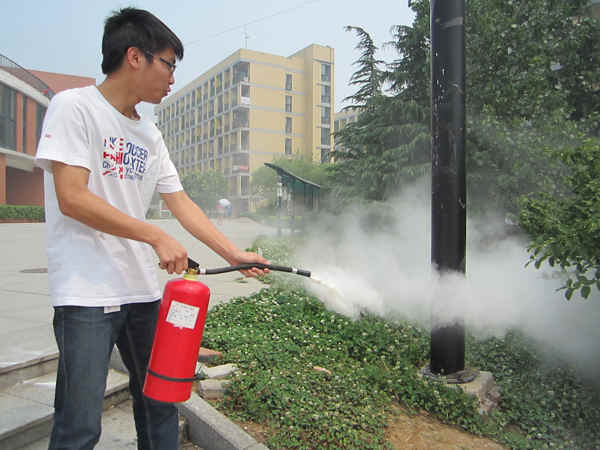 保卫处老师莅临现场,面授有关消防安全知识,并现场示范灭火器材的科学操作。演练开始前,演示老师就发生火灾时如何逃离的方法现场讲解和示范,并要求同学们要在保护自身安全的情况下进行灭火救灾。演练中,老师详细讲解了各种消防器材的使用常识,以及发生火灾时的扑救方法,并现场指导同学们训练、使用灭火器材,同学们认真倾听、观看讲解示范。整个活动过程组织严密,操作规范。
