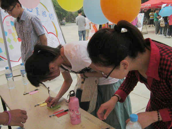 心理自助中心主办的“爱之汇,心灵相约”――母亲节寄语交换活动在二食堂广场成功举办。