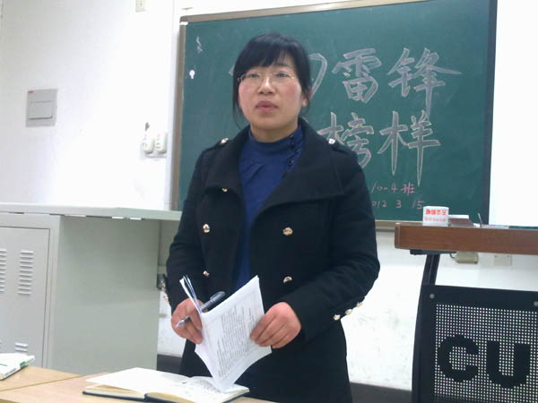 为更深入学习雷锋精神, 3月15日上午,安全10-4班在教五B106教室顺利召开了“学习雷锋好榜样”主题班会,安全10-4班班主任吴征艳老师出席了班会,班级全体同学参加了此次班会。班会由团支书闫一鸣同学主持。