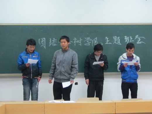 安全10-3班在教四C104召开了以“团结一心树学风”为主题的班会。本次班会由学习委员罗剑飞主持,安全10-3班全体同学参加了本次班会。