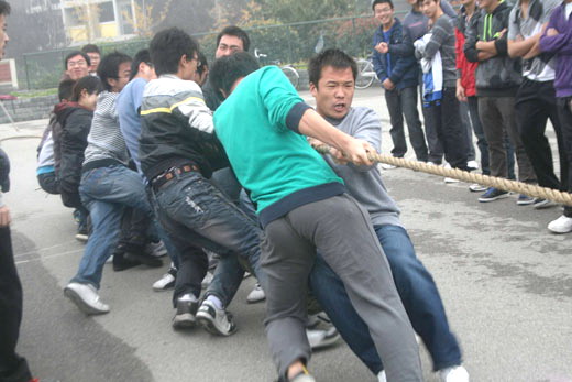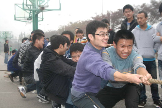 在随后的复赛中,安全四班和安全三班分别战胜对手进入了决赛。在最后的决赛中,虽然双方的队员体力都已经消耗殆尽,但还是表现出了高昂的斗志,李成刚老师亲自担当决赛的裁判,随着李老师的一声哨响,全场顿时沸腾,比赛双方都使出了浑身解数,拼尽了最后一份力量。最终安全四班更胜一筹,取得了本次拔河比赛的冠军。
