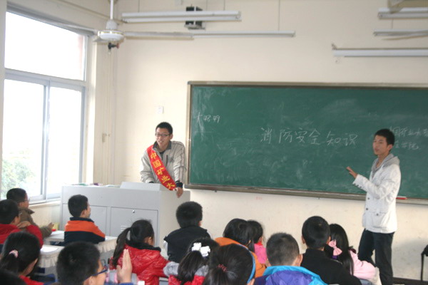 11级三班的31名同学和院青年志愿者协会成员共同来到了矿大附小进行消防知识的宣传讲座。