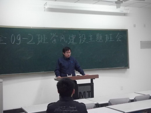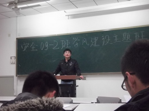 为了加强同学们对于学风的重视以及指导同学们今后的发展情况,11月22日晚上7点,安全09-2班学风建设主题班会在教五B208顺利召开。本次班会由班长马维界主持,班主任李晓伟老师、08级李海鉴、袁鹏同学受邀参加本次班会。