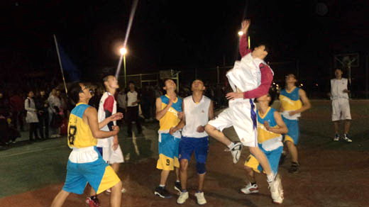 比赛在双方拉拉队员高昂的助威声和战鼓声中拉开战幕。文法学院以激昂的气势首开得胜,一连拿下两球,使安全男篮倍感压力。但安全男篮9号队员孔佳的上篮瞬间打破了紧张的气氛。凛冽的寒风抵挡不住啦啦队的热情,呐喊助威声此起彼伏。随后,双方队员都表现出了不俗的水平,进行了激烈的拼抢,双方陷入胶着状态,比分差距甚小。最终,经过上半场,包子漫画