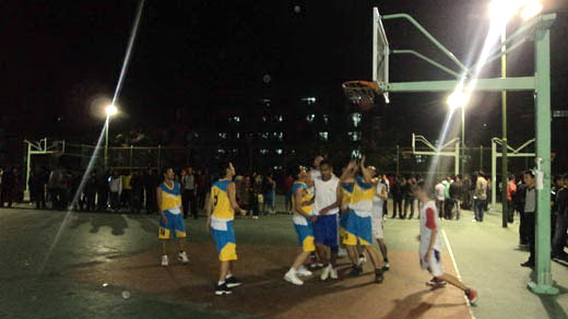以13:11的微弱优势暂时领先。经过短暂的中场休息,比赛进入下半场。安全男篮一路稳扎稳打,比分始终保持领先。但是文法学院男篮同样发挥出色,凌厉的攻势使比赛进入白热化,拼抢异常激烈。安全男篮随后进行了战术调整,巧妙的配合,行云流水般的上篮使比分差距不断拉大,15号李钊的精彩球技更是赢得阵阵掌声。比赛最终定格在46:24的比分上。