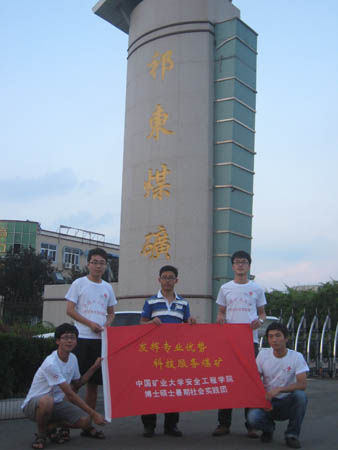 优秀博士生和硕士生共6人组成,秉承着“科技服务煤矿”的观念,他们将走进煤矿,用自己的所学为煤矿解决疑难。启动仪式上,实践团负责人陆新晓介绍了此次实践的具体内容和相关日程安排,他指出,在接下来一周的实践活动过程中,实践团要做以下三个方面的工作:一是参观学习矿井基本概况,了解矿井基本的生产系统和安全措施;二是在煤矿职工中宣传安全生产知识;三是紧紧围绕“发挥专业优势科技服务煤矿”这个主题,针对矿井实际情况,结合最新的煤矿安全生产新技术,由不同研究方向的同学从矿井瓦斯防治、矿井防火灭火、煤尘防治三个方面开展三专题讲座。仪式最后,负责人陆新晓又强调了实践过程中要听从煤矿方面安排,遵守煤矿规章制度,充分利用自己所学专业知识解决现场实际问题的同时增加自身的实践经验,此外,他还特别强调了在活动实施过程中要注意的安全事项。