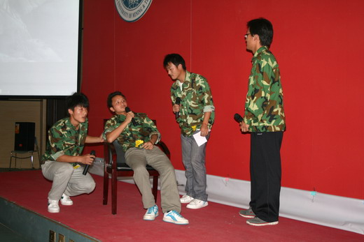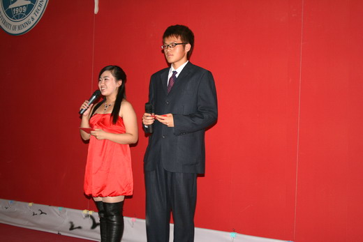 的李丹萍,高艳等同学,一腔凌云意,一展冷傲骨,融合了女子独有的柔美以及革命战士的刚毅,将影片选段《女子敢死队》诠释得别般生动,引得全场掌声雷动。每组精彩的表演之后,附带影片知识问答环节,在配音竞技上互不相让的各组同学在此环节中亦表现不俗,鲜少出错,充分展示了同学们对影片及其背景的透彻了解,更体现了他们对国、对党的热忱关切。