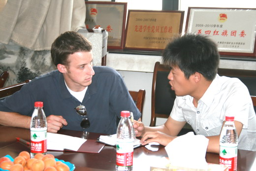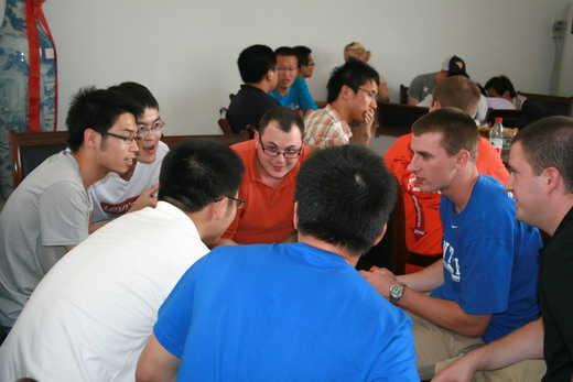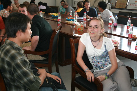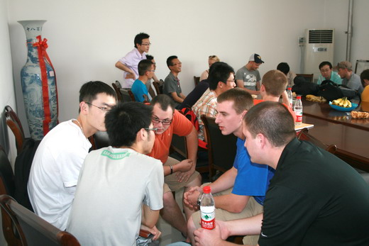 发展概况、专业设置及知名的教授、学者,而后,美国同学做了简单的自我介绍。在简单的仪式之后,座谈会正式开始,会上同学们谈论了如各自的大学生活、个人爱好等话题,并就自己不懂的问题向对方进行了咨询,整个会场气氛非常热烈。