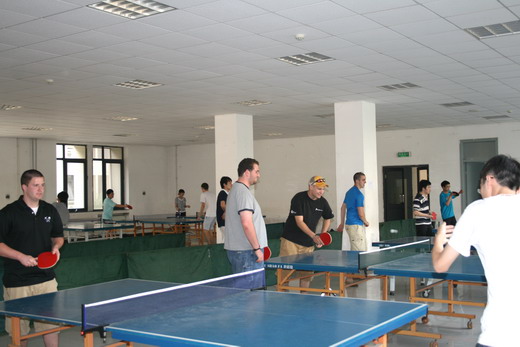 座谈会结束后,我愿学生代表还同美国矿业工程专业交流生进行了乒乓球友谊赛,美国交流生虽然技术不是很娴熟,但是整个比赛过程中一直充满高涨的热情。