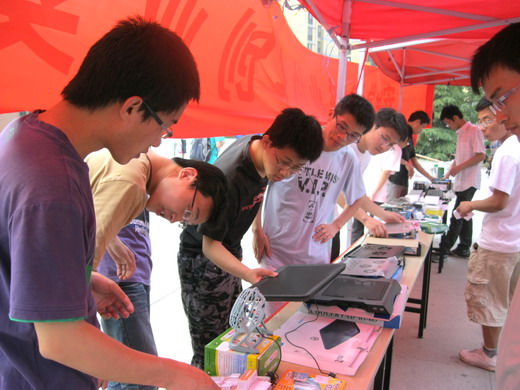 活动开始,同学们纷纷使出浑身解数来吸引过路同学来看自己销售的产品,更是有同学放开嗓门老练地吆喝:“电子产品降价啦!快来看!快来买!”。由于所销售的物品很贴近同学们实际生活,吸引了很多同学前来围观,更是成功的销售出了许多产品。这些电子产品,主要有鼠标、键盘、U盘、散热器等数十种产品,种类齐全,价格实惠,赢得了消费者的一致好评,同学们以“学以致用,领跑激情创业里程”将理论联系实践,亲身感受创业氛围。闫安同学是商品展场的“销售主管”,他表示:“这样的商业实践和一般的练摊有别。不但要负责广告和销售,还要自己洽谈进货,进行销售核算等等,相当于进行商业实战体验,能够为同学们毕业后的创业能力打下良好的基础。”