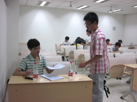 考试一开始,全体同学准备就绪,监考人员按次序为同学们分发试卷。同学们拿到试卷后不慌不忙,将题型大致浏览一遍后方才答题,努力做到落笔时胸有成竹。考试期间,考场秩序井然,气氛严肃,同学们纷纷认真做答,俨然已经把此次模拟考试当作正规考试来对待。考试结束后,同学们纷纷提出自己未解答的题目,并相互做了深入的探讨,共同交流题目解法以及考试心得,此次模拟测试解决了同学们不少的疑虑。考试历时近一个半小时后顺利结束。