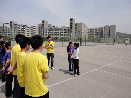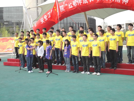 下午余星星加入了安全09-1班的赛前排练,她用手语展示了自我介绍,赢来大家的钦佩与掌声,在合唱排练过程中余星星配合着大家尽可能的把合唱完整 的演绎下来。休息时,安全09-1班的同学跟星星玩起了“老鹰捉小鸡”的游戏,虽然大家累得满头大汗,星星也是气喘吁吁,但是欢声笑语不断。下午4点比赛正式开始,星星难免紧张,但是她很快就被红歌热烈的氛围所感染。安全09-1班在星星与每位同学的共同努力下也获得了三等奖的好成绩。