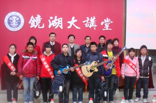 最后,黄军利副处长对参与爱心班级活动的班级提出了“感恩、务实、服务、奉献”几点希望,并宣布“爱心班级”共建活动正式启动。由徐州市特教中心四名同学为大家带来的吉他弹唱《我的未来不是梦》将本次活动推向高潮,感动了在场的每一个人。最终,活动在《只要人人都献出一点爱》的歌声中圆满结束。