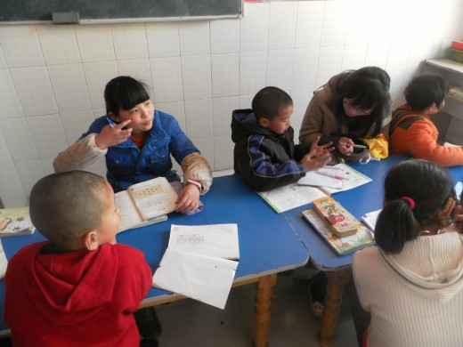 之后,同学们充当了小老师的角色,教孩子们读课文、识生字,并和他们做互动小游戏。孩子们的热情非常高涨,态度非常积极。整个活动一直持续到下午5点钟。最后,同学们依依不舍和启聪的孩子们告别。