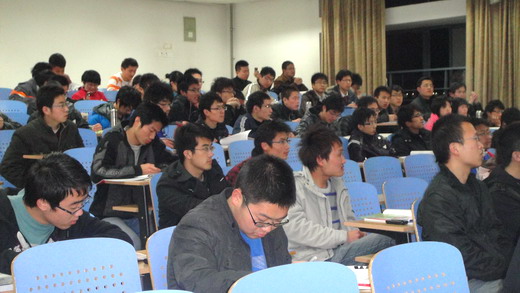 讲座在吴雁江老师风趣的自我介绍中开始。首先吴老师就英语学习的方法向大家做了详细的介绍,同时结合了考研方面的信息,站在准备考研的同学们的角度对英语学习中可能遇到的障碍及自我调节的方法进行了深刻的分析与讲解。接着许顺康老师以轻松幽默的口吻向同学们讲述了英语考研的技巧,期间还不时的结合自己的亲身经历对现场的同学们进行鼓励,许老师凭借幽默的演讲方式与充实的演讲内容博得了在场同学的阵阵赞叹,热烈的掌声接连不断。