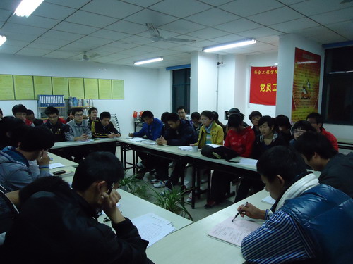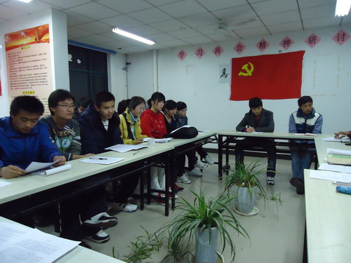 知行社、党员工作站、10级各班预备党员、发展对象、入党积极分子参与的关于“两会”的研讨会于梅三五楼党员工作室顺利举行。本次研讨会由知行社成员张阳主持,知行社副社长刘治伟到场参加了本次会议。