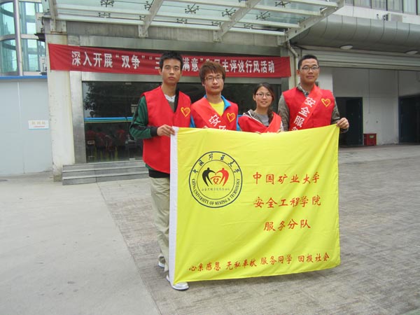 8点整,团队队员在徐州市医院门口集合。在医院有关负责人的带领下,队员进入了医院。首先,医院负责人给大家着重讲解了医院的有关制度。紧接着,由队长任青刚强调活动的注意事项以及活动纪律后,志愿者服务活动正式开始。由于医院的规模很大,科室很多,很多人不了解科室的分布和医院的一些规章制度以及医保的使用方法,特别是一些没有家人陪伴的老人。队长将队员有针对性的分成医保使用解说、科室引路、制度解说等分队。服务活动中,队员还与医院就医人员进行了诚恳的交谈,不仅为病人就医提供了方便,同时也让更多的人体会到“志愿服务”的意义。