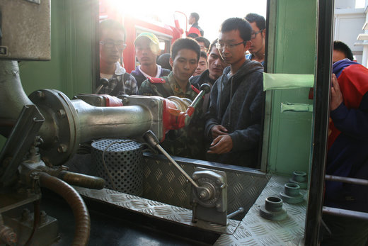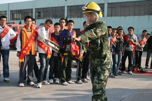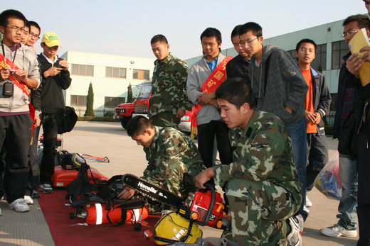 下午两点三十分,在青协主席徐宾泽,副主席徐立的带领下,消防10-1班、安全10-1、安全10-2的同学组成的志愿者队伍从二食堂坐包车前往徐州市消防特勤二中队进行参观学习。来到消防队后,消防队员们便向同学们介绍了各种消防工具的使用,如钢筋速断器,空气呼吸器,多功能水枪蓬头等常用的工具。为了让同学们更好的了解这些工具,消防队员们又进行了模拟演练。之后,同学们也积极地投入其中,亲手操作来了解各种工具的使用。其中,同学们对氧气呼吸器十分感兴趣,纷纷争上前去佩带。遇到不懂的问题时,大家都前去询问消防队员,队员们也耐心细致的向同学们讲解。随后,同学们又去参观了消防队的展示厅,在消防队员的讲解下,同学们了解到了日常生活中容易引起火灾的各种情况。在各种专业的防生化服前面,大家都忍不住前去拍照留念。最后,在队员的带领下,大家来到了消防队员们的宿舍,干净、整齐的床单和被褥让大家十分诧异,钦佩之情油然而生。
