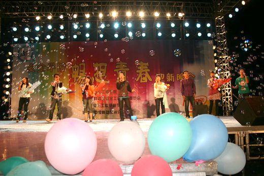 晚会在欢快激昂的乐队表演中拉开了序幕,由阿依丁等人演奏的《大阪城的姑娘》等曲目一下子将全场气氛活跃起来。随后,四位主持人一起上台,向全场观众的到来表示热烈的欢迎。晚会很快在精彩的节目中推向高潮。赵艳辉、刘欢等人表演的踢踏舞《大河之舞》,其雄浑的气势迎来了场下阵阵掌声。由大一新生带来的《三句半》更是逗得观众捧腹大笑。郭峰、李灿等人表演的机械舞《We Rolling》表现了包子漫画