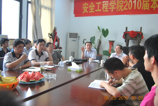 在会议室召开2010届毕业班党员、学生骨干与学院领导面对面交流座谈会,院党委书记章毛平、执行院长王德明、副院长林柏泉、李增华、程远平、党委副书记钱雄、2010届毕业班辅导员孙留涛、陈少松及40多名毕业班党员和学生骨干参加了座谈会。会议由钱雄副书记主持。