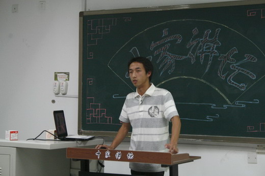 第一个讲演的刘亚庆同学就“大丈夫”一词,纵观古今,谈到了自己对“大丈夫”的理解。随后出场的杨正杰和吕远洋同学分别就《菜根谭》等国学著作谈到了对当代大学生处事与修身的各自看法。第四位的讲演者袁文静同学以大学爱情为主线,展现了一个从相遇、相知到相思、相许的国学爱情旅程。之后,史桂岭同学又以他风趣幽默的语言和对《红楼梦》的独到见解讲述了红楼梦与当代大学生情感的联系和影响。在方明同学对孟子的辩证分析和深入探讨后,张亚飞同学又通过对古诗词的剖析为大家揭示了一个诗意的爱情。徐香通同学从艺术生活、仕途、情感等方面为大家诠释了一个形象鲜活的苏东坡。最后出场的傅丽碧和刘建祥同学则以儒家经典《论语》为线索,分别向大家阐释了自己对儒家的为人之道、处世之道、天地人之道的深刻见解。演讲过程中,观众同讲演者还进行了充分的互动。