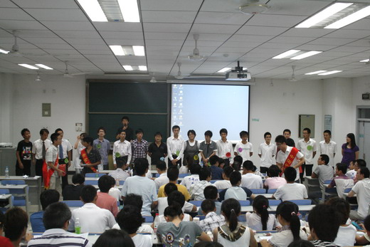 学生党员,班干部代表,团委学生会干部、干事,共计113名同学到场参加投票,其中8名党员负责计票。 下午6:00时,答辩会现场已座无虚席。6:30,答辩大会准时开始。首先由09-10届学生会主席伏旭对本次答辩委员会的组成做了相关说明,并详细的介绍了答辩和投票选举的规则以及主席团成员的最终确定办法。