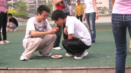 、管理学院、信电学院3个学院的团委学生会女生部联合举办的清凉一夏主题活动――“开心大胃王”比赛在镜湖畔举行。