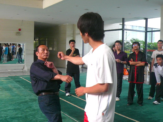 比赛结束后还开展了武术交流会,张师傅和龚师傅向大家讲授了一些实用的防身技法,并亲自上阵为同学们示范,耐心的讲解令参赛选手们和其他武术爱好者们获益匪浅,甚至令很多门外汉也开始对中国武术产生了兴趣,交流会持续了将近两小时才结束,但同学们依然意犹未尽。通过此次比赛,选手们以武会友,相互切磋,也使很多观众开始对武术感兴趣,对于弘扬我国传统文化起到了很好的推进作用。