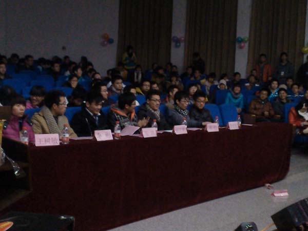 联合九个学院在外文学院报告厅B102举行了宿舍文化节颁奖仪式,蒋恺、王树敏、李彬、张琪、李 世航、王聪、汤志鹏等各学院学生会主席团成员出席了本次仪式。