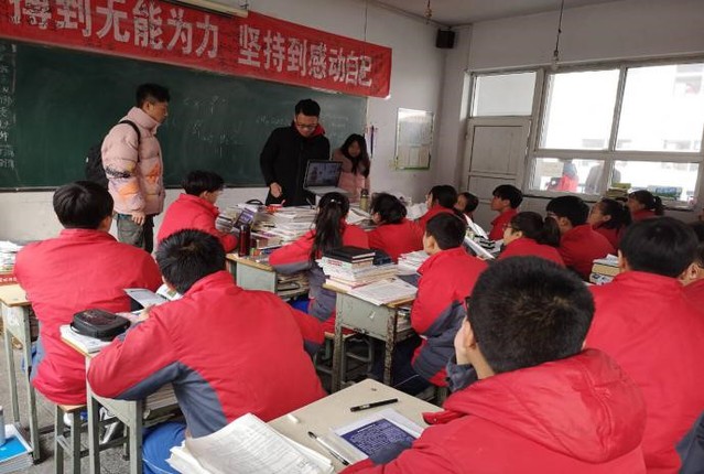 的四名学生走进翼城县清华园中学校园,向学弟学妹们介绍矿大这个有着百年历史的名校。