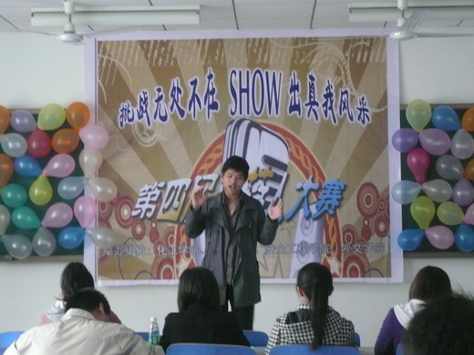 、矿业学院、化工学院和外文学院的文艺部联合举办的第四届主持人大赛“挑战无处不在,秀出真我风采”初赛在教5C405隆重举行。来自各个学院的同学积极参赛,展示自我风采。