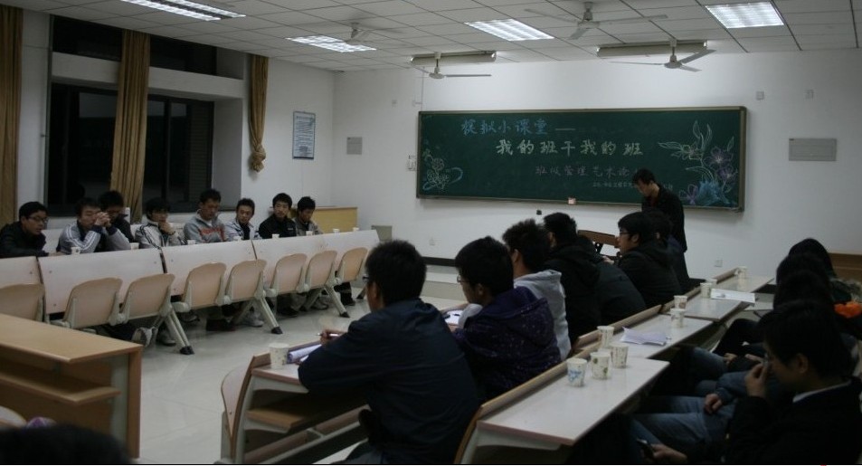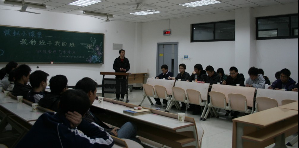 班级管理艺术论坛旨在各班班委敞开心扉,畅所欲言,促进各班级、各年级相互学习、相互交流,从而提升班委的管理水平。本次论坛邀请了08、09级的现任、曾任班级干部及对班级管理感兴趣的同学。晚上7点整,各班班干陆续到达会场,论坛正式开始。首先,主持人李晶对各位同学到来表示热烈的感谢,并分别介绍08、09级各位班级干部,对本次论坛的目的作了简短的陈述。