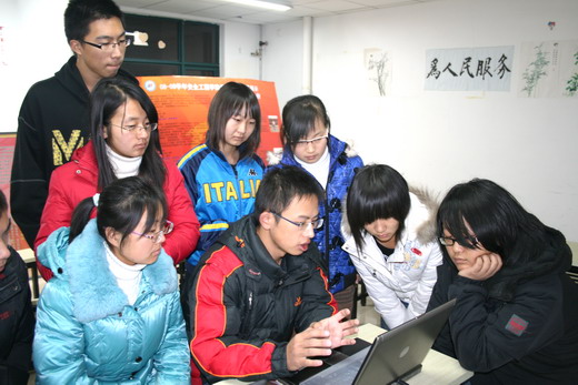 首先,李永冲同学向大家介绍了PS的平面设计、图片处理合成等功能。他从最基础的概念讲起,详细介绍了工具栏中常用的处理工具、窗体中各图层的显示隐藏及历史记录等。然后他结合示例图片讲解了图片中片断的截取、图片的羽化、图片饱和度处理等常用操作方法。接着,卢勇同学以防治甲流为例向大家现场演示了海报的制作过程。在两位同学耐心讲解的过程中,新闻宣传中心所有成员认真学习,仔细记录,提出疑问并得到了两位同学的一一解答。