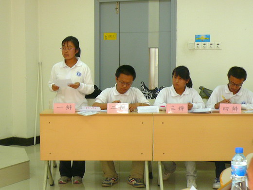 10月25日下午,由包子漫画 实践部主办的“包子漫画 09级新生辩论赛”决赛于教五A202顺利举行。本次辩论赛正方是安全09-4班,辩题为“在校大学生知识积累比道德修养更重要”,反方为安全09-1班,其辩题为“在校大学生道德修养比知识积累更重要”。09级辅导员刘筱婕老师,07级优秀辩手于超轶,08级优秀辩手王林生、南锦博担任本次辩论赛评委,袁文静同学担任此次比赛主席。
