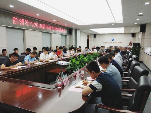 2018届毕业生代表座谈会。学院领导章毛平、钱雄、秦波涛、朱晓东、周劲锋等出席座谈会。座谈会由钱雄副书记主持。