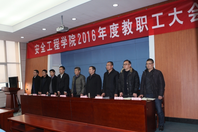 2016年度教职工大会”在矿业科学中心A200举行。校教代会执委会副主任、校工会主席李来成,学院党政领导及全体教职工出席大会。大会由院党委书记章毛平主持。