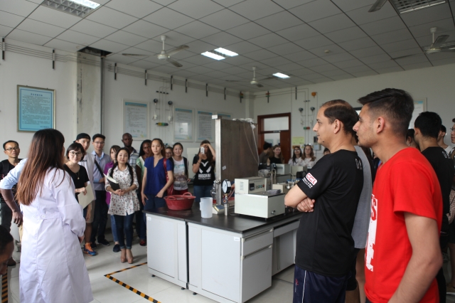 各个实验室。留学生们对实验室的仪器设备和实验内容很感兴趣,问题不断,现场老师都做了一一解答。